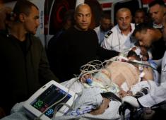 صور.. وصول الزميل الصحفي المصاب أحمد أبو حسين إلى مجمع فلسطين الطبي