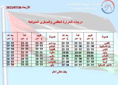 درجات الحرارة المتوقعة من الأربعاء إلى السبت