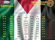 طقس فلسطين ودرجات الحرارة المتوقعة من الاثنين إلى الخميس