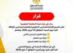 تعليم غزة تقرر تقديم موعد إجازة نصف الفصل الثاني لكافة المدارس