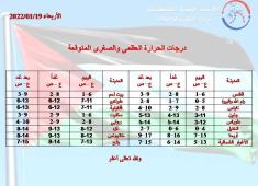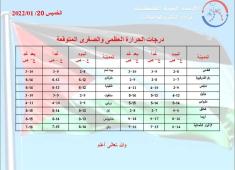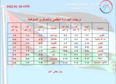 درجات الحرارة المتوقعة في الأراضي الفلسطينية من الخميس إلى الأحد ..تحذير من تشكل الصقيع والانجماد