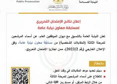 إعلان نتائج الامتحان التحريري لمسابقة معاون نيابة عامة