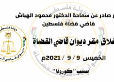 الهباش: إغلاق مقر ديوان قاضي القضاة في رام الله يوم غد الخميس بسبب " كورونا "