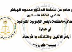الهباش : إغلاق محكمة حوارة الشرعية أيام الإثنين والثلاثاء والأربعاء بسبب " كورونا "