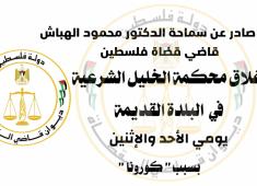 الهباش: إغلاق محكمة الخليل الشرعية يومي الأحد والإثنين بسبب " كورونا "