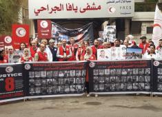 الهلال الأحمر الفلسطيني ينظم وقفات تضامنية موحدة للمطالبة بتحقيق دولي في جريمة استهداف مسعفيه في رفح