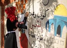 جدارية في غزة بمناسبة يوم المرأة العالمي