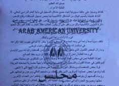 مجلس الطلبة في الجامعة العربية الأمريكية يعلن عن تعليق الدوام حتى السبت