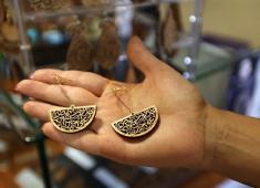 صور.. فلسطينية تروج لأبيات شعرية ومقولات عربية معروفة تحفرها في إكسسوارات مصنوعة من خشب الزيتون