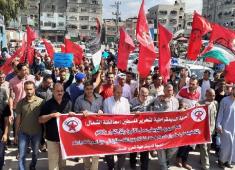 وقفة جماهيرية لـ“الديمقراطية“ أمام تموين الأونروا بمخيم جباليا
