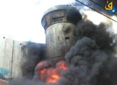 اشتعال النيران حول البرج العسكري في بيت امر بإطار مشتعل
