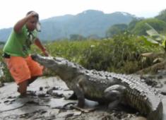 فيديو .. مغامر يتحدى تمساحا ويستفزه في مبارزة غريبة