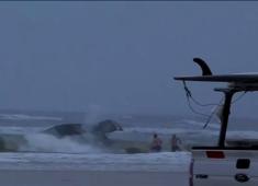 فيديو.. إنقاذ حامل وأطفالها من سيارة غمرتها أمواج المحيط