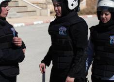 نساء بهراوات يكافحن الشغب في الضفة الغربية