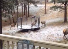 فيديو.. أيائل صغيرة تستمتع بالقفز على "الترامبولين"