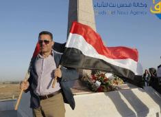 رفع العلم المصري على النصب التذكاري بالفالوجة احتفالاً بنصر أكتوبر
