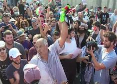 متضامنون يحتجون امام منزل يعقوب في نيويورك