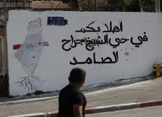 إزالة شعارات واسماء عائلات عن جدران حي الشيخ جراح