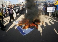عضو في البرلمان المجري يحرق العلم الإسرائيلي