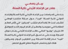 اتحاد كرة القدم: مباراة منتخبنا مع عُمان ستقام في عمّان